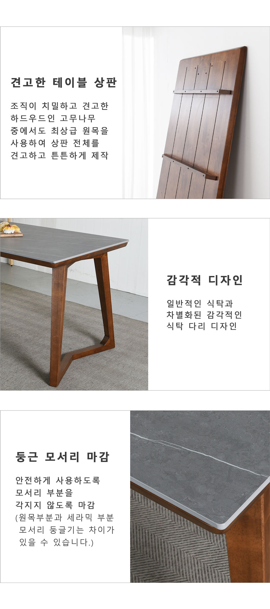 우선 가장 중요한 미적 이미지와 인테리어 이미지는 식탁 전문 브랜드 지아티처럼 외부에서 보이는 금속 같은 나사가 없다. 일반적으로 저가형 테이블은 테이블의 기능만을 추구하는 데 급급하기 때문에 나사가 외부로 노출된 상태로 제작됩니다. 저처럼 가구에 대해 잘 모르는 초보자라도 아띠 식탁은 외관뿐만 아니라 견고함과 견고함에도 신경을 쓴다는 것을 한 눈에 알 수 있습니다.